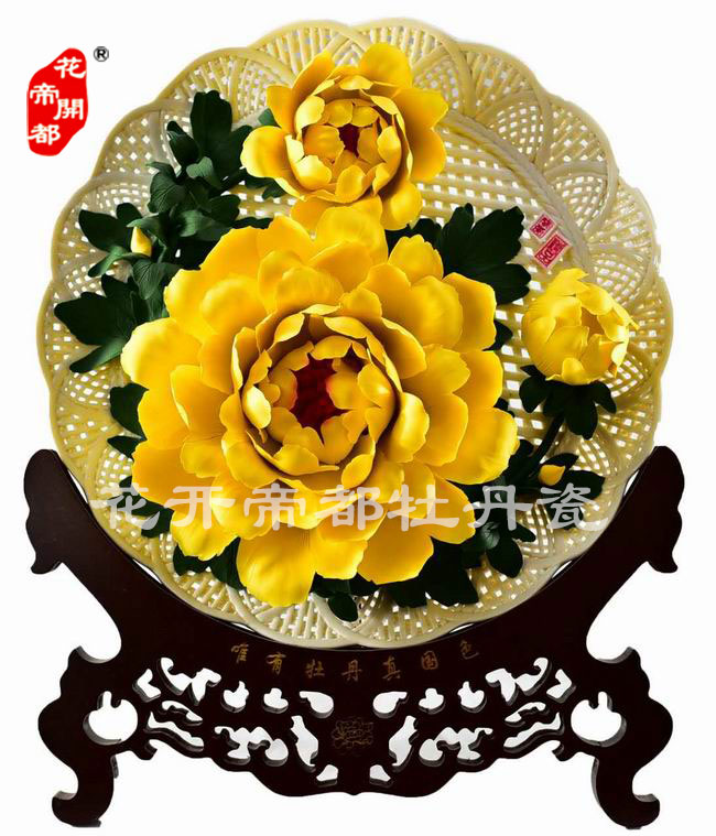 產(chǎn)品系列主要包括:牡丹瓷花盤、牡丹瓷屏風(fēng)、牡丹瓷盆景、牡丹瓷壁掛和牡丹瓷鼎,形式多種多樣!每一件作品都是藝術(shù)的結(jié)晶,花、枝、葉均是手工捏制,造型逼真生動(dòng)。