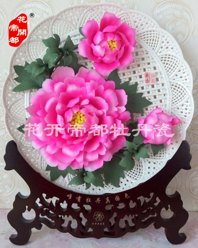 產品系列主要包括:牡丹瓷花盤、牡丹瓷屏風、牡丹瓷盆景、牡丹瓷壁掛和牡丹瓷鼎,形式多種多樣!每一件作品都是藝術的結晶,花、枝、葉均是手工捏制,造型逼真生動。