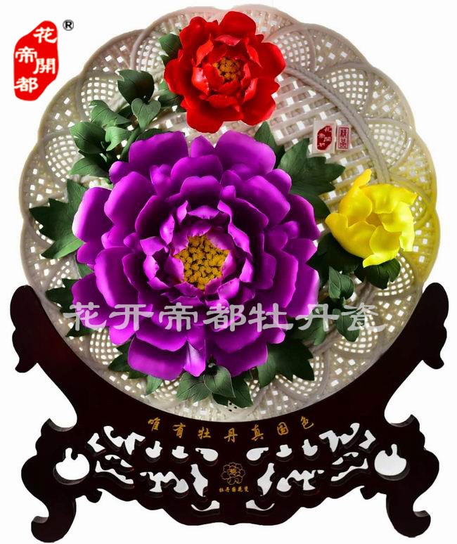 產(chǎn)品系列主要包括:牡丹瓷花盤、牡丹瓷屏風(fēng)、牡丹瓷盆景、牡丹瓷壁掛和牡丹瓷鼎,形式多種多樣!每一件作品都是藝術(shù)的結(jié)晶,花、枝、葉均是手工捏制,造型逼真生動(dòng)。