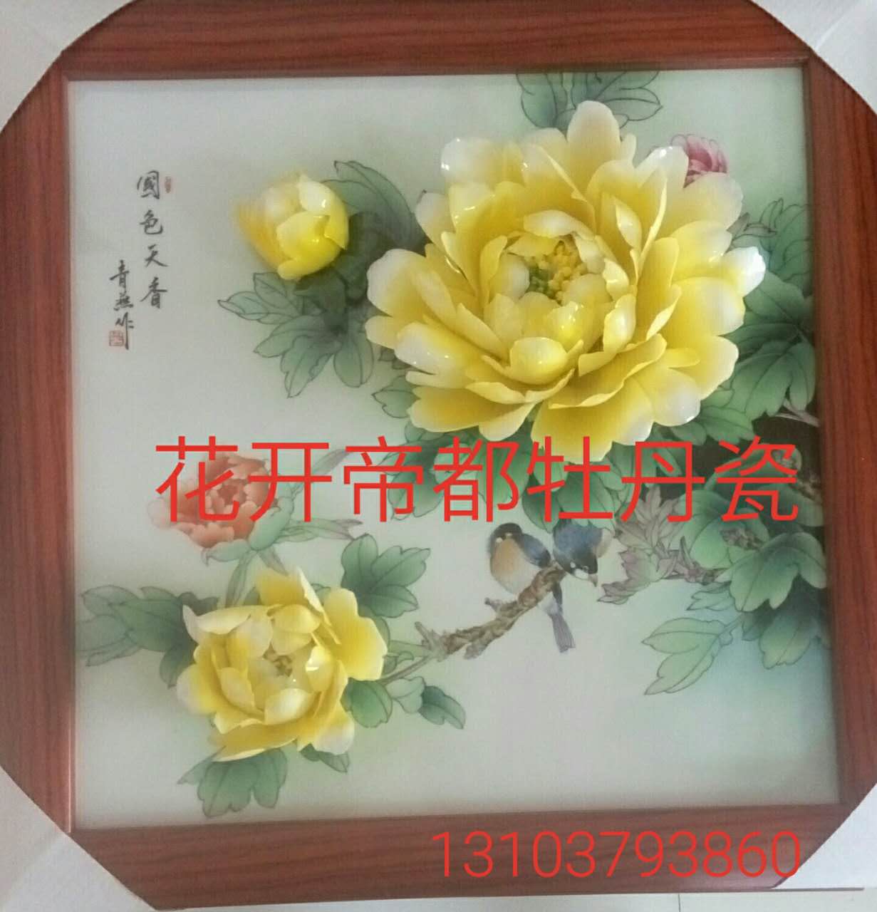 產(chǎn)品系列主要包括:牡丹瓷花盤、牡丹瓷屏風(fēng)、牡丹瓷盆景、牡丹瓷壁掛和牡丹瓷鼎,形式多種多樣!每一件作品都是藝術(shù)的結(jié)晶,花、枝、葉均是手工捏制,造型逼真生動(dòng)。